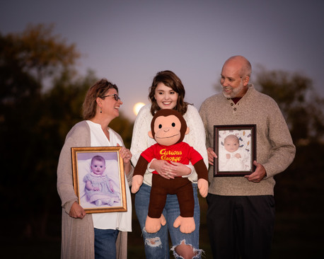 As with every Senior portrait session, I highly encourage them to have their parents come along and jump in for at very least one photo! This is often one of the few times you have your kiddo pinned down or everyone's schedule isn't taking them in twelve different directions. Mama also had this creative idea to bring along a couple of photos of when Margaret was little, along with her favorite stuffed animal. By this time we were past sunset and the moon was creeping over her shoulder. I think it added quite the touch!